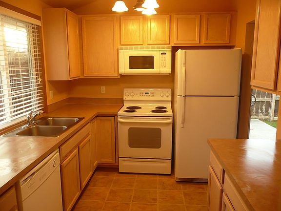 This unit is in nearly new condition. Very large duplex with garage. Vaulted ceilings. Propane fireplace insert for cozy nights Energy efficient. Single garage with opener, Underground sprinkler system on timer, fenced back/side yard, washer and dryer hook-up, tenant must keep yard in nice condition, please phone for inquiries $75 month fee for water and septic