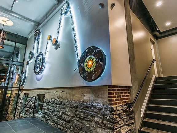 Beautiful 5th floor 2 bedroom, 2 bath condo in the historic Lancaster Press Building! Open floor plan with high ceilings, exposed brick walls & concrete columns. Kitchen features granite countertops, island, tile backsplash, under cabinet lighting and stainless appliances including gas range, refrigerator & dishwasher! Hardwood flooring in foyer, kitchen and living room. Primary bath features shower with tile base & surround, glass shower door and tile floor. Stackable front loading washer & dryer. Relaxing rear balcony. Unit includes assigned parking space in secure & lighted adjoining parking garage on N. Market Street, and an assigned storage unit in ground level. Monthly $300.00 condo fee included assigned parking, water, sewer, trash, gas for cooking, use of roof top deck & onside fitness center 24/7, and common area maintenance. Pet Friendly Building. EZ to show - quick possession possible!