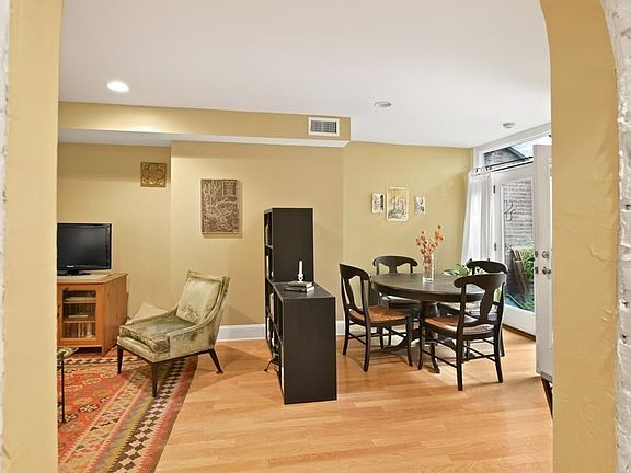 Charming, spacious garden level apartment with open concept living area which leads out to a darling patio nestled against pristine Haven Street. This is a classic brownstone experience with two good sized bedrooms, an updated kitchen and bath, great exposed brick and tons of detail. W/D in unit, heat and hot water included. Pets considered with a $50 per month pet fee.