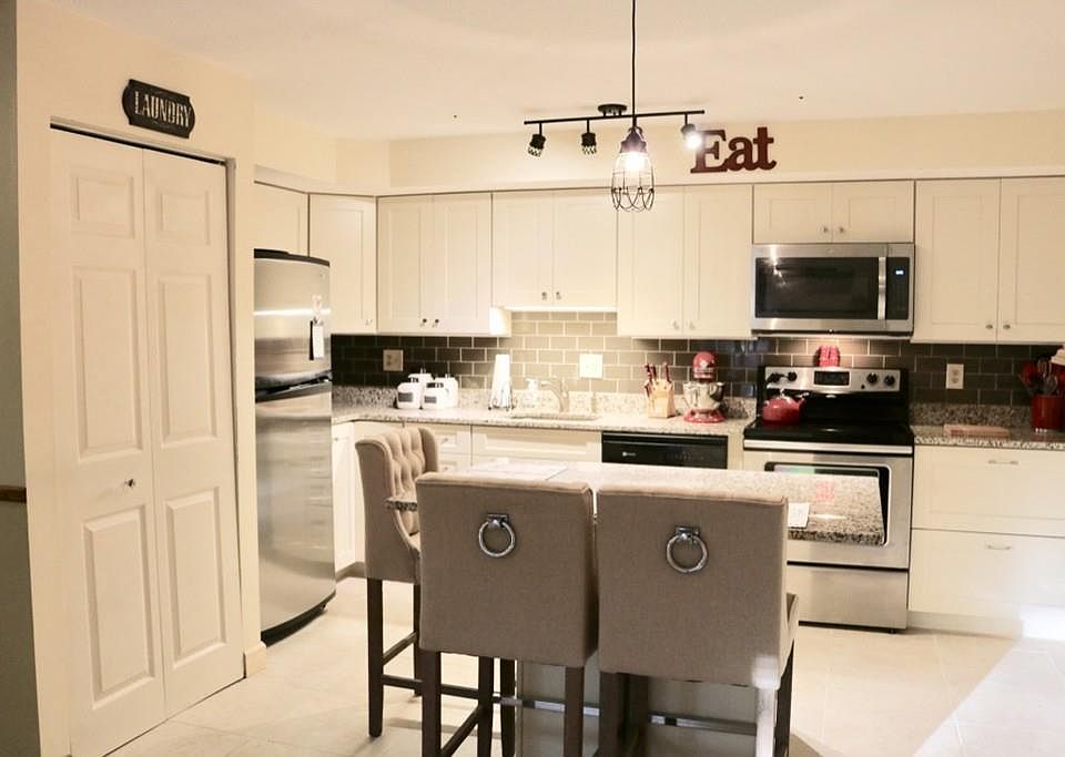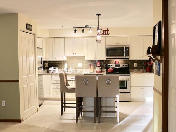 Enjoy carefree living in this gorgeous updated first floor unit! Step inside to enjoy an open concept kitchen/living room w/new custom cabinets, tile floor and backsplash, stunning granite countertops and island. This ideal living arrangement is perfect for those who love to entertain. The living room opens to a private screened porch that overlooks a quiet backyard, wooded lot and pond. Head back inside and just off of the main living space you will enjoy a beautifully renovated full bath complete w/ a new vanity, granite countertop, new tile floor and a refinished shower/ tub. Tucked at the end of the hall, you'll find a spacious bedroom w/ a large mirrored close. Enjoy the convenience of private washer/dryer hook ups in the unit. Move in with no worries as the owner just replaced the hot water heater. Storage is plentiful as this unit comes with additional attic storage. With no stairs to climb this home is ideal for a first time home buyer or those looking to downsize