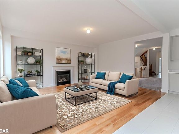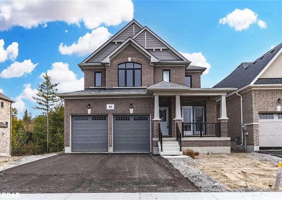 GORGEOUS NEWLY BUILT 3,055 SQFT HOME ON A PREMIUM RAVINE LOT! This home offers a secluded backyard with no rear neighbours and serene views of lush green space. Enjoy the convenience of being close to parks, golf courses, trails, highway access, and Base Borden while relishing this neighbourhood’s peace and privacy. Boasting 3,055 square feet of above-grade living space, this home is designed to impress. The main level features soaring 9-foot ceilings and abundant natural light, creating an inviting and airy atmosphere. The open-concept kitchen and living room are the heart of the home, showcasing a cozy gas fireplace, elegant tile, and hardwood flooring. The kitchen is a chef's dream with top-of-the-line upgrades, including ample cabinetry, an island with a double sink, and sleek stainless steel appliances. Entertain guests in style with a separate formal dining room and a family room adorned with plush carpeting, perfect for cozy evenings. The hardwood staircase, enhanced with a carpet runner, leads you to the upper level, where you'll find the spacious primary bedroom. This retreat features a walk-in closet and a luxurious ensuite, with a large glass-walled shower, dual vanity, and a relaxing soaker tub. The unfinished walkout basement, with a side entrance, presents endless possibilities for customization, including the potential for a second unit. With rough-ins for a bathroom and laundry facilities, your dream space is waiting to be realized. Don't miss your chance to own this exceptional property—your dream home awaits! Schedule a viewing today and experience this #HomeToStay for yourself!