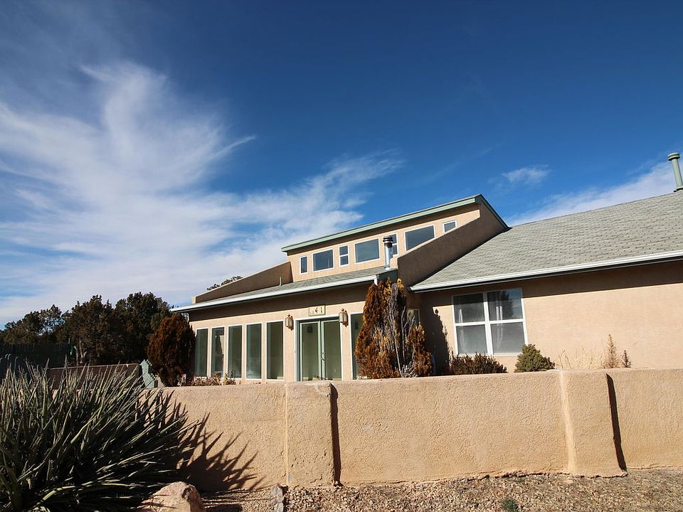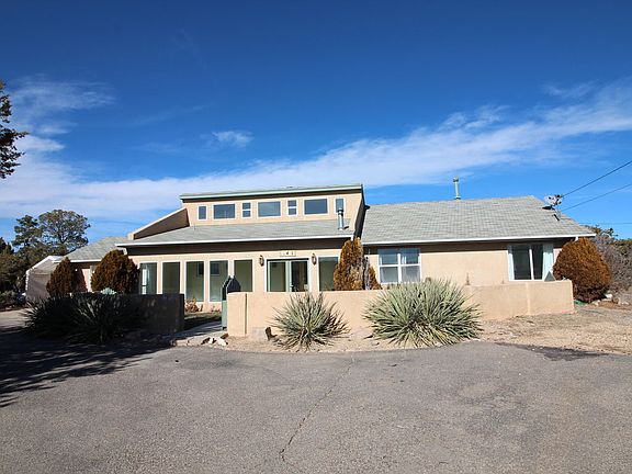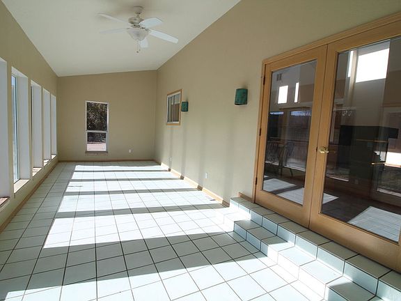 Super sunny and bright home nicely nestled in the trees but mere minutes from shopping, schools and freeway access. South facing sunroom stays warm even on snlowy days and also has a wood stove. French doors lead to the main house great room with huge chef's kitchen, pass-through opening to dining area, gas log two-way fireplace, tile and high quality laminate wood floors. Down the hall are the bedrooms and second bath. Master suite boasts two closets, bathroom has two vanity areas with sinks, garden tub, separate shower. French doors provide access from master to sunroom. Property is fenced and gated; access road and driveway are both paved. Large storage shed in back yard plus oversized garage for storage and workshop projects.