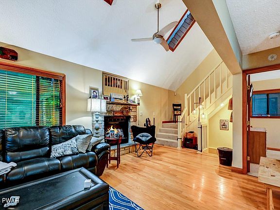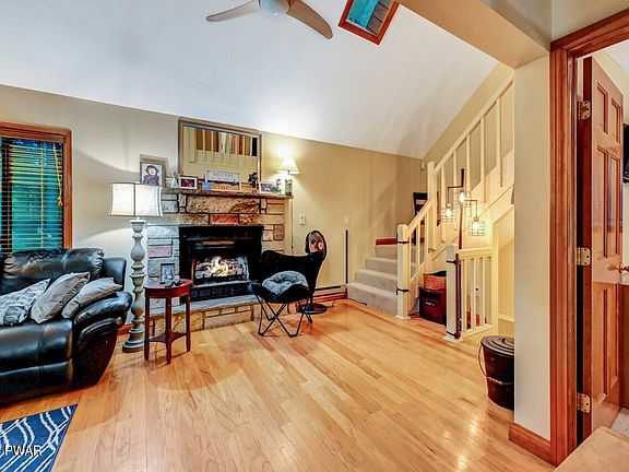 Wallenpaupack Lake Estates, a beautiful amenity-filled community in The Northern Poconos, just two hours from the NY, NJ, and Philadelphia Areas with lake rights to LAKE WALLENPAUPACK and CENTRAL WATER AND SEWER. Welcome to this light and bright salt box-style home, featuring 2 bedrooms plus a cozy sleeping loft and 1.5 bathrooms. The open floor plan and high ceilings create an inviting, spacious atmosphere, with a loft overlooking the living room for added charm. Enjoy outdoor living with a front deck and a side deck conveniently located off the kitchen. The finished lower level offers a large recreation room complete with a brand-new wood-burning stove, perfect for relaxing or entertaining. Set on a level property, the home boasts beautiful landscaping and a circular driveway for ease and convenience. The community features include lakes, beaches, 2 outdoor pools, an indoor pool, a fitness center, a teen center, an adult lodge, tennis courts, hiking trails, gaming courts, ballfields, camping, boat ramp access to Lake Wallenpaupack and more.