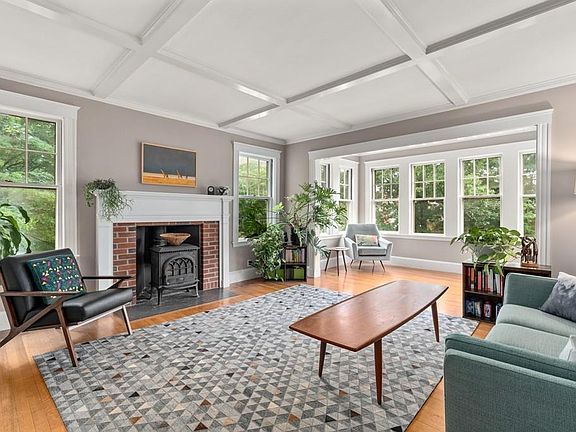 Bright and airy condo with treetop views, located in ideal commuter location. Short distance to Brighton Center, Cleveland Circle, close to great restaurants, coffee shops and three T stations. Large living room open to sunroom, and formal dining room. The condo is loaded with period detail and charm including coffered ceiling, molding, hardwood floor, high ceilings, French doors, and hutch. Sun-splashed eat-in kitchen leads to a spacious and inviting porch. Generous bedrooms, built-in linen closet in bathroom, and no wasted space. Extra storage and laundry in basement, garage parking (see note). Live on one of Brighton's most desirable streets.