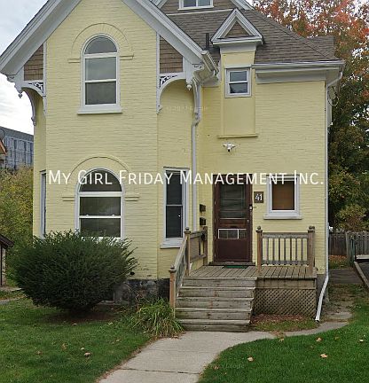 41 Waterloo Street is nestled perfectly in the heart of downtown Kitchener backing on to the Google building, a stone's throw away from the LRT, and walking distance to all amenities and parks and downtown Kitchener an Uptown Waterloo. This beautiful Victorian century home has recently been renovated to offer an updated bathroom, in suite laundry, security, and other lovely touches. The house has a furnace in the basement that will keep the home at around 21 in the colder months. There is a heat pump in the apartment that will afford you the opportunity to further heat the home, and also offers air conditioning for the summertime! The owners wanted to keep the integrity of a house of this age and so, throughout the home you'll see beautiful Victorian style wood doorways and window frames, and original baseboards. The house features a main level apartment which is available now. You could consider this apartment of one bedroom plus den or a two-bedroom. Upon entry, you walk into a beautiful kitchen with ample cupboard and countertop space, to the left is a formal living area, and off the formal living area is a den or second bedroom. This apartment is carpet free. As you walk past the kitchen, you'll come to a side entry which will take you out to a small backyard which is private for the main level apartment. There is one parking space included. The bathroom has been updated and has a beautiful walk-in shower and in suite laundry. To the left of the bathroom is a bedroom with good closet space and enough room to set up a king or a king queen size bedroom set. This home is inclusive of all utilitys and we're looking to lease it out as soon as possible. The successful applicant will be able to prove gainful and consistent employment, good credit, and excellent landlord references. We're looking for a quiet and responsible resident who will add to a healthy, positive, and safe living environment. Please feel free to book a showing with us as we would love to meet you and tell you more about the house!