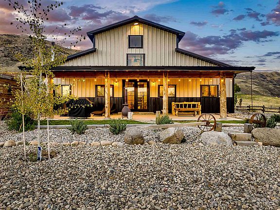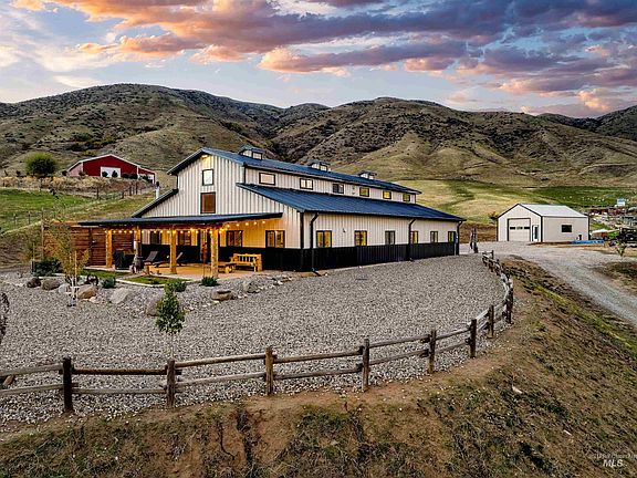 Embark on a thrilling adventure with this one-of-a-kind custom home! Featuring 2 beds on the main level and a loft with a half-bath on the second floor, this residence offers a unique living experience. Situated on 4.4 acres, the property provides breathtaking 360-degree views of mountains and overlooks the Payette River. Constructed in 2022, the home boasts a luminous open floorplan with quality finishes, including engineered oak hardwood floors, a custom Redwood center island, butcher block countertops, and wood accents throughout. Enjoy the warmth of a stacked stone woodburning fireplace, knotty pine ceilings, and walls of windows framing panoramic views. Relax on the covered patio, taking in sights of Bogus Basin and the tranquility of mountain living. The property includes an expansive attached garage with RV parking, a detached 30'x25' shop, and welcomes horses. A mere 30-minute commute to Eagle, with the added perk of HOA private river access, this home promises a perfect blend of adventure and comfort
