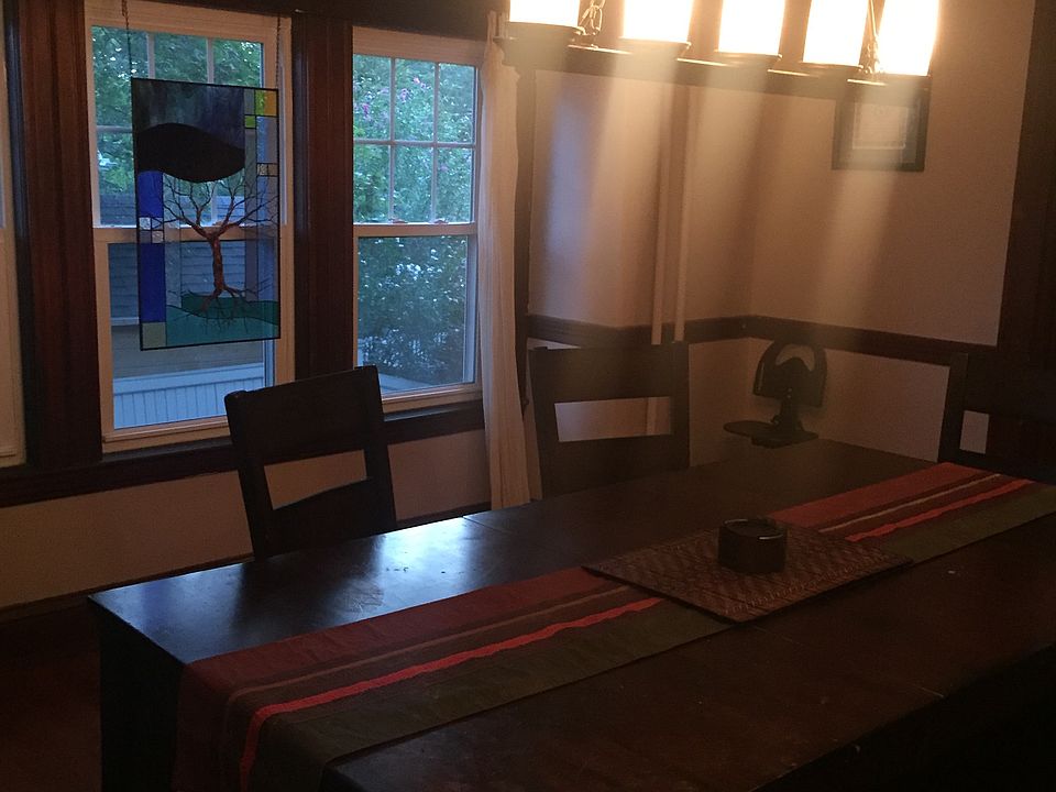 This 4 bedroom home rental features 1.5 updated bathrooms as well as updated kitchen with stainless and granite throughout. Refrigerator with ice and filtered water. Gas stove with double oven- lower convection oven. Original gum wood and built in huge stained glass windows add character to this 100+yr old home. Basement has tons of storage and front load washer and dryer. Patio area in back of house is great for entertaining and grilling. Plenty of on and off street parking. Centrally located and within walking distance to Roslindale Village, West Roxburys Center Street, Commuter Rail, Express bus to downtown. Less than 4 miles to Longwood Medical Center. Pets are negotiable. Contact: Rozzibarn@gmail.com for Owner pays for water. Tenant is responsible for gas and electric. Tenant at will lease.