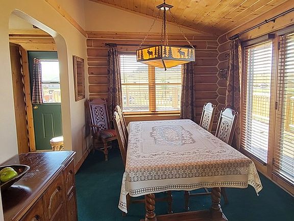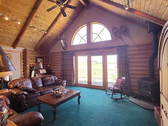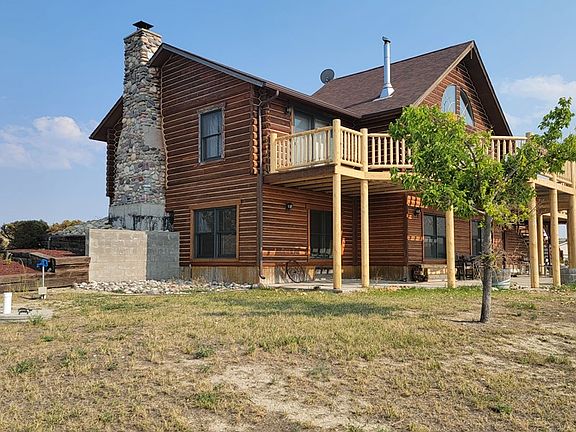 This 3 bedroom 2 1/2 bath 2,700 + square foot custom log home with spectacular views of the Beartooth Mountains on 5+acres is awesome. The features include a large river rock fireplace that extends through the open great room with cathedral ceilings and the daylight walkout family room below, the private master suite with walk in closet and large bathroom has a separate shower and tub, the spacious kitchen with custom cabinetry with top of the line appliances is great, separate office with 1/2 bath is located on the main floor, New large wrap around Trex decking with log railing and posts, an oversized double attached garage.....