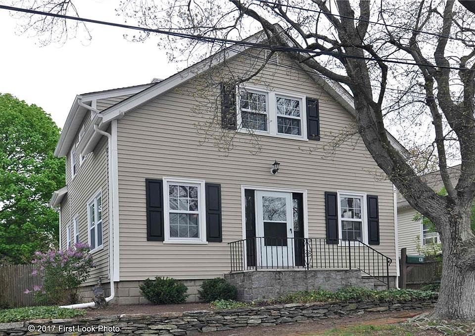 Charming 1930 colonial /bungalow is a 1 mile walk to Pawtuxet Village which offers many restaurants, shops, marina's, park etc.. this home offers 9 ft ceilings on 1st floor with a large sunny living room with built-ins bookcases, dining room, new cabinets/counter in kitchen , full tile bath with tub. 2nd floor offers master bedroom with door to full bath w/shower, also 2nd double bedroom has access to bath. 3rd bed is twin / or office/ nursery. Partially finished basement offers another full bath with shower, laundry, storage. Detached garage with new door and has opener. Fenced yard, private deck, vinyl siding.