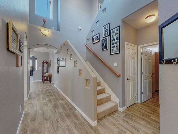 Pulte home in High Resort area features Master suite downstairs, 2 bedrooms & large loft upstairs with balcony to see the fabulous views of the Sandia Mountains. Kitchen has maple cabinetry, tile backsplash & beautiful new wood flooring. Great room has a gas log fireplace. Master suite also has dbl sinks, garden tub and separate shower. walkin closet. Close to the Rio Rancho Sports Complex