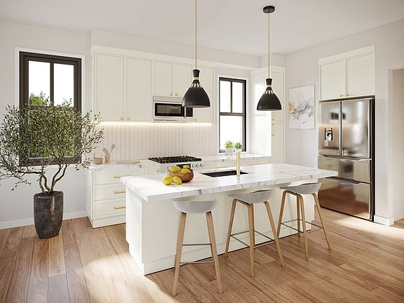 Enjoy your morning coffee from your 240 sf roof deck while taking in the panoramic view of the skyline. This beautifully designed 2 bed 2 bath boutique condominium features an OVERSIZED living area of uninterrupted space & plenty of natural light. Dining area welcomes a full-sized table with an additional south facing back deck. Kitchen features a custom 7' island, top of the line Samsung appliances, Porcelanosa backsplash & a flexible room for butler's pantry or office. SUNNY primary bedroom has charming bay windows complete with ensuite. Wide plank oak floors & contemporary lighting provides balance to original architectural details, 9' 5" high ceilings & exposed brick. Also includes: gas range with air fry mode, smart home technology, video doorbell surveillance, In-unit w/d & 64 sf of deeded finished storage. Ideally tucked away on a QUIET street in Orient Heights.