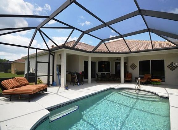 Enjoy the luxurious life in this amazing pool home w/ 4 BR, 3 BA, a den, formals & a tandem 3 car garage on over a 1 acre lot. As you approach this home, you are captivated by the beautiful exterior featuring mature landscaping, brick paved driveway, walkway, columned entry w/ 12' Ceiling & double doors w/ gorgeous glass inserts. Once inside the home, be ready for the "wow" factor as no details have been spared. You will be greeted by a foyer entry w/ 11' tray ceiling w/ crown moulding & beautiful chandelier lighting. Home features new AC, arched entryways, decorative wall niches, ceramic tile throughout & so much more. This flowing floor plan comes w/ a den connected to the master suite & adjoining the family areas. The spacious master suite boasts recessed lighting, a ceiling fan, sliding glass doors leading to lanai & pool area, his & hers walk-in closet & a private bath designed for the gods. The formal dining room is separated from the kitchen by an elegant, one of a kind butler's pantry. The gourmet kitchen comes complete w/ granite countertops, wood cabinets w/ crown moulding, built-in desk, stainless steel appliances, undermount sink, breakfast bar w/ pendant lighting & breakfast nook. Soak up the sun lounging in your private oasis boasting decorative columns, an outdoor kitchen & plenty of area to entertain. Located near schools, dining, shopping & easy access to I-75. Don't miss out on all this amazing home has to offer. Call today & schedule your private showing appointments before its gone!