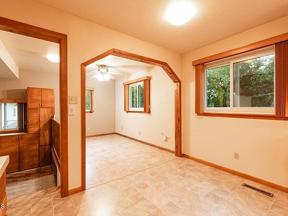Welcome to this ranch-style home in the heart of North Dakota! The custom built cabinets provide plenty of space! The hardwood floor mudroom that doubles as an office, holds a full sized desk, shelves, cabinets, and closet. The living room also has custom cabinetry. The large kitchen has floor to ceiling cabinetry with dining space. The primary bedroom features hardwood floors and a closet system and drawers. The basement provides a large area for entertaining or relaxing, a bedroom, laundry room, pantry, and full bath. There is a private back yard for all your get-togethers, large patio space for a dining, chairs, firepits, and a covered breezeway connected to the garage. The front garage has great overhead storage plus working space. The front porch has custom wood railing and an oversized overhang to provide coverage great for all sorts of weather. the whole home and garages have full metal roofs, windows installed in 2008, vinyl siding, gutters and more. There is an additional garage in back that is perfect for anyone needing space. The two car garage was built in provides an additional 1,120 sq ft. It is loaded with heated floors, hoist, floor pit, heater, compressor, air ways, refrigerator, and more. Use it as a gym or a workspace, or whatever your needs may be. The front porch and deck was added in 1990, the kitchen sq.ft doubled in 2008. Make this beautiful home yours today!