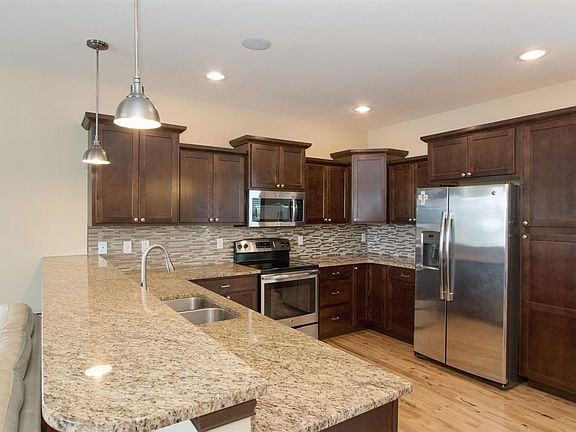 Like-new, move-in ready townhome in conveniently located, cozy neighborhood. Features spacious open main floor with wide windows and large kitchen. Stainless steel appliances, gas range, granite tops, intricate backsplash,and upscale cabinets with hardwood throughout the main. Convenient main floor 1/2 bath w/ granite tops, added shelving, and laundry room. Vaulted ceilings in all bedrooms. Large master suite, w/ tiled shower and walk-in closet. Convenient garage shelving and water softener stay with home.