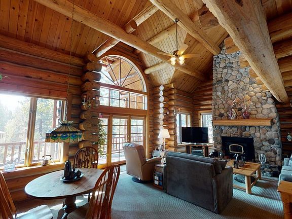 MAMMOTH'S ICONI LOG HOME This majestic mountain home is nestled on a quiet cul-de-sac in one of Mammoth's finest neighborhoods & is walking distance to The Village. This custom crafted log home sits on a double lot that backs to USFS land. This picturesque mountain retreat was built with exceptional quality construction that has timeless appeal with a warm and peaceful aura. This home is 3,160 sq ft featuring 4 bd +den/office 3 ba and comes furnished with furniture that appears to have been made for it. The master suite has 2 walk-in closets (his & hers).This home features a warm and inviting interior accenting the beautiful logs, wood floors and a massive river rock fireplace that goes from floor to ceiling. This special home has an expansive deck to enjoy the outdoors and observe nature at its best. The roof was recently replaced and the logs were stained. Snow removal for the winter of 20/21 has been prepaid. All furnishings and pictures stay making this home turnkey and ready to move in.