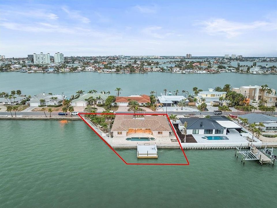 One of the best lots on St Pete Beach. 208 feet of seawall and a new dock. Working pool & Jacuzzi. Home was damaged during Helene but it is a spacious 4 bedroom 3.5 bath 2800 Sq. Ft. floor plan with endless possibilities for you to redesign or Build your new dream home on a 12,500 Sq foot lot. ST PETE BEACH is the best of all the beaches because of its walkability to 30 bars and fine dining restaurants. This home is only .3 miles from Gulf Blvd. Our beach is the closest beach to the interstate in the state of Florida. Downtown St Pete is 15 minutes away or a short UBER ride. 55th Ave is the #1 street on our beautiful beach. The back of the home faces south which provides a beautiful sunrise with your morning coffee.