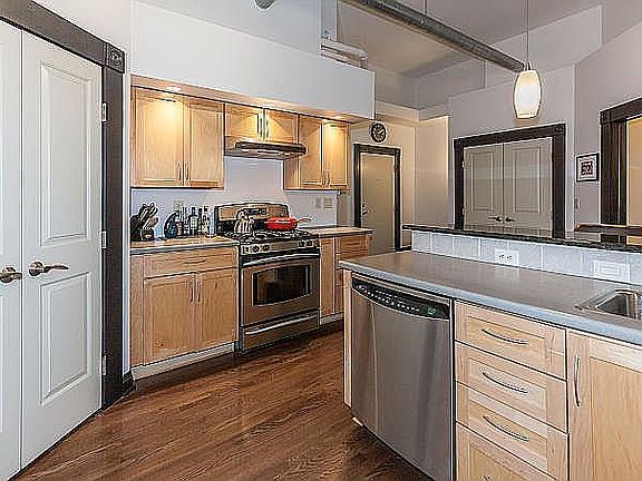 Downtown Loft Living in the 6th street art area-walking distance to everything; stores, restaurants, YES theater, Mill race center, bike and walking trails. Large Bedroom (fits King size adjustable bed) walk-in closet, MBath with jetted soaking tub and separate shower, additional 1/2 bath, Huge kitchen with pantry, gas fireplace, laundry room with full size appliances. The oversized windows with motorized blinds provide plenty of natural light. Elevator available.