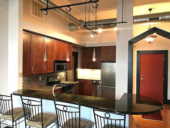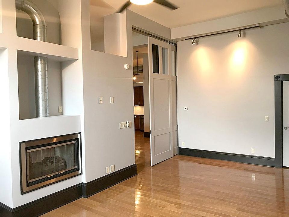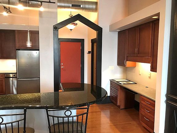 Downtown loft- open spaces, high ceilings, tall windows, hardwood, double fireplace. Floor to ceiling pocket doors separate rooms for privacy. Granite breakfast bar, stainless steel appliances, gas range, abundant cabinets. Pantry in laundry room off kitchen. Washer & dryer included. Built-in desk & entertainment shelving. Huge bedroom with walk-in closet +sleeping loft. Whirlpool tub, rain shower, tile surround. New high efficiency HVAC, Furnace, and Garbage Disposal in 2022. Enjoy Columbus’ Arts Alley right out your front door. Beautiful wall mural by Nick Abstract on building exterior, and street mural right outside your window. Wonderful view of the campanile of First Christian Church designed by renowned architect Eliel Saarinen. Relax and entertain on the rooftop deck. 2nd floor unit with elevator access. Storage unit in building included. Great location convenient to coffee shops, boutiques, bars, restaurants, and entertainment. Just a few blocks from riverfront Mill Race Park.