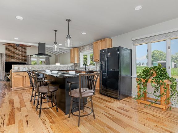 Move-in ready mini farm close to it all! Awesome updated ranch featuring vaulted dining/living areas, large eat-in kitchen with center island/stone backsplash/new appliances, walkout primary suite w/attached bath + walk-in closet w/laundry, 2 addt'l bdrms + hall bath, and ample basement storage w/2nd laundry hookup. Plus an attached 2-car garage, screened porch/deck overlooking a picturesque pond, and multi-purpose 4-stall barn/workshop. All on 6+ acres mins from downtown Loveland/bike trail!