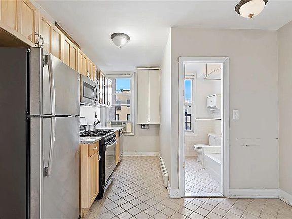 OPEN HOUSE From 1-3 PM Saturday 07/29 & Sunday 07/30 Welcome to this beautifully renovated one-bedroom apartment, featuring exquisite upgrades that enhance its charm and functionality. The kitchen boasts elegant granite countertops and modern stainless steel appliances, offering a delightful space for culinary endeavors. The bathroom features a designer vanity, adding a touch of sophistication to your daily routine. Step inside and be greeted by the inviting hardwood floors that span the entire apartment, creating a warm and welcoming ambiance. Natural sunlight streams through the windows, illuminating the space and creating a bright and airy atmosphere. Additionally, the bedroom showcases a stunning original ceiling, adding character and unique charm to the room. The location of this apartment is truly exceptional. Indulge in the renowned Fiore's Deli, a local favorite for a delightful lunch experience. With its convenient proximity, you'll find that commuting to New York City is a breeze. Just two short blocks away, you'll have fast and easy access to NYC transit on Clinton Street, ensuring a seamless and efficient commute. This apartment is ready for you to make it your own. Don't miss the opportunity to see it in person and witness its beauty firsthand. Schedule a viewing today and discover the perfect combination of style, convenience, and location.