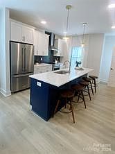 Welcome to NoDa! Brand new, contemporary, 4-story townhome with attached 2 car garage. Floorplan features open concept living/dining; 2 bedrooms with ensuite baths; top floor bonus room / sleeping space with wet bar. Walk out, covered, rooftop terrace. Blocks to shops and restaurants; minutes to Uptown. Entry: 2 car garage / tandem garage. Extra storage space under the stairs. Main Living Floor: Functional island kitchen, stainless appliance package, cooktop with vent hood, and soft-close drawers and cabinets. Walk in pantry. Spacious living/dining area with half bath. Upper Floor: Primary bedroom has two closest, custom built shelves, office nook - great for work from home. Luxe bath with frameless, walk in shower. Secondary bedroom has attached bath with soaking tub. Washer and dryer are included. Top Floor: Bonus room / additional sleeping space, half bath, and bar area. Enjoy time outside on your private, covered terrace with outdoor TV already installed.