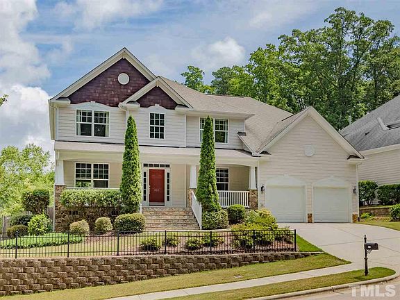 This is the ONE! Beautiful Stone front w large southern porch that backs to an open space w wooded privacy. This home checks all the boxes w formal living & dining, office, kitchen w new SS Range & Convection Micro/Oven. Sunny kitchen open to over sized family rm. 4 bedrooms plus a bonus & walk in Storage!! New two tiered deck to entertain overlooking a well manicured fenced yard. Excellent location minutes to RTP, RDU, NC State, & Downtown Raleigh & Cary! Pristine, Well maintained home is Move in Ready!