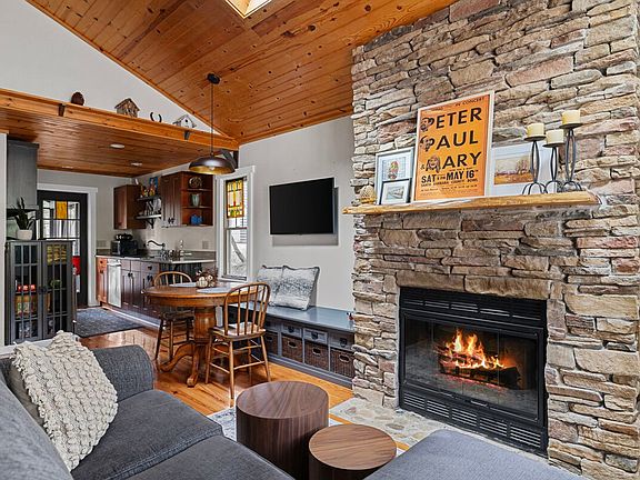 Experience the charm of Michiana Shores with this fully renovated cottage, just blocks from Lake Michigan beaches. This vacation dream home, set on a quiet corner lot, exudes Frank Lloyd Wright vibes. Relax in the Great Room with a stone fireplace and flat-screen TV, or prepare meals in the high-end Open Galley kitchen. The cottage features two stylish and cozy bedrooms and an all-new bathroom with a shower-bath and marble floors. Enjoy the 3-Season porch, sun deck with barbecue, and firepit for outdoor gatherings. The mantra at Meadow Pines is Stylish Design with Comfort in Mind. The Great Room boasts vaulted ceilings, skylights, solid wood flooring, and a magnificent stacked-stone fireplace, creating a rich and inviting atmosphere. The fully equipped Open Galley kitchen features top-of-the-line appliances, including a Bosch dishwasher, and cherrywood cabinets. Gather for meals at the dining table in the 3-Season porch, surrounded by stained-glass window decor and artisan craftsmanship reminiscent of Frank Lloyd Wright. The two bedrooms offer top-quality bedding, ample closet space, and one has sliding glass door access to the sun deck. Meadow Pines is pet-friendly, welcoming up to 2 dogs with prior authorization. Enjoy the outdoor amenities, including beach supplies and bikes for your use. The sun deck features a dinette set with an umbrella, chaise lounges, and a gas grill for barbecues. An outdoor shower is available for rinsing off after beach visits. Located just a stone's throw from a majestic Lake Michigan beach, this cottage is a 10-minute drive from New Buffalo's recreational harbor, woodland parks, and downtown attractions. Explore nearby Oselka Park with its baseball fields, playground, and tennis courts, or enjoy the popular restaurants, galleries, and boutique shops of downtown New Buffalo. Michigan City, just 5 miles away, offers a wide range of dining, drinking, and vacation activities. Don't miss the nearby Stop 50 Wood Fired Pizzeria for some of the best pizza and Italian goodies. The minimum age to rent this home is 25. Check-ins and check-outs are not permitted on Thanksgiving Day and Christmas Day. A Ring doorbell is installed at the front door. Pets must be authorized at the time of booking. A guest prescreening may be required to abide by legal requirements and property security rules.