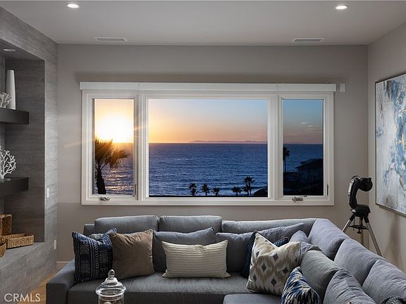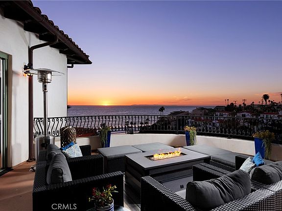 THE ULTIMATE SEASIDE RETREAT with breathtaking ocean and whitewater views from this spectacular and spacious one-story "Coastal Penthouse" in prime location very near the beach, pier area, shops and restaurants of downtown San Clemente. This luxurious property boasts the finest architectural detail with an open-concept design, floor-to-ceiling windows capturing the ocean view, and large expansive deck areas, complete with outdoor fireplace, perfect for indoor/outdoor living, entertaining and relaxing while enjoying the amazing ocean view. This property spotlights an elegant use of space with large living, dining, kitchen and family room areas...all with ocean views. The Chef's kitchen is a delight with large island/breakfast bar with quartz waterfall counters and commercial style appliances. The lavish primary suite is amazing complete with a private balcony deck, ocean view, and gorgeous primary bath with dual vanity sinks and separate tub and shower. The additional two secondary bedrooms, each with ensuite bath equipped with high end designer touches, are beautifully finished. This fully furnished property, with nearly 3,000 square feet of living space plus deck areas, includes a total of 3 bedrooms, 3.5 baths and highlights the exceptional quality and ocean view from all main rooms offering a serene and secluded beachside setting. The contemporary furnishings, inside and out, are superb and designed for comfort with a casual yet sophisticated decor style. An elevator leads you to this fully furnished oasis covering the top floor plus 3 parking spaces are provided. An inside laundry room is located next to the kitchen rounding out the extraordinary amenities. Enjoy the fun and festive beach lifestyle living in this exquisite masterpiece surrounded by the tranquil sound of the rolling surf, ocean breeze, and ever-changing ocean views.
