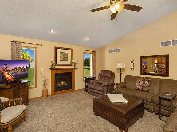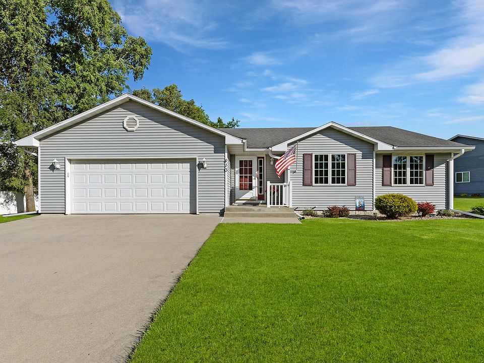 Beautifully cared for 4 bedroom ranch in Roland with 2,733 finished square feet. Inviting living room with gas fireplace and vaulted ceiling. Open kitchen with lots of natural light, tile backsplash, and wood laminate flooring. Convenient main floor laundry - washer & dryer included. Primary suite with attached 3/4 bath and walk-in closet. Finished basement with 4th bedroom plus family room and office/flex room. New furnace, A/C in 2022, and water heater 2018. Composite deck overlooking beautiful expansive backyard.