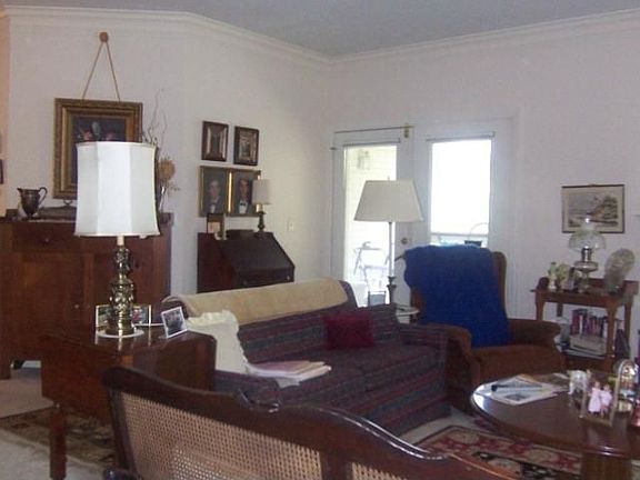 Great one level condo, ground level end unit * large covered porch/deck overlooks trees & open common area * 2BR, large LR with woodburning fireplace * parquet entry, 9' ceilings, nice moulding, MBR has 2 closets * Great community & amenities.(Uploaded Monday)