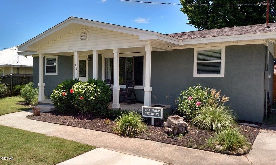 Just a few blocks from the beach, this cute bungalow was completely remodeled in 2015 for sellers' college aged children. It was built in 1960 and includes a detached 12 x 16 storage building with electricity and a golf cart port. It sits on a larger lot and is close to the beach and Pier Park. New roof, new windows, new HVAC, new hot water heater, resurfaced ceilings, new light fixtures and recessed lighting, new ceiling fans, new doors and hardware, new trim, new tiled floors, refinished oak floors, new window coverings (blinds) and new paint inside and out. The plumbing and electric have been updated. The kitchen has new cabinets and granite counter tops with all new appliances. The bathrooms have new fixtures, new tubs and tile surround.