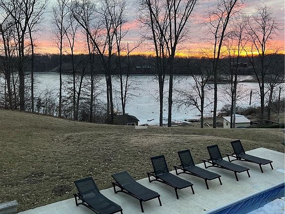 This lake-front brick home is in beautiful shape and ready for you to move in! It has so many features; the attached and detached 3-car garages with tons of space, and a guest suite above the detached garage. But once you step inside the home, you're met with striking stained glass windows, high ceilings, large rooms, views of the lake, and plenty of space\storage! In the finished basement, you'll find tons of storage, a large theater room, an entire second kitchen, living room, dining area, a large island, and a bedroom with an attached bathroom. You can walk right out of the basement to the patio where you'll find your heated in-ground pool with a retractable cover, a wet bar, and plenty of yard space. Behind the home and through the yard, you have a cute little boat house, your own personal boat dock with a lift, and beautiful lake views! Owner willing to negotiate leaving many things with the home as well. Call for your showing! Agent related to seller.