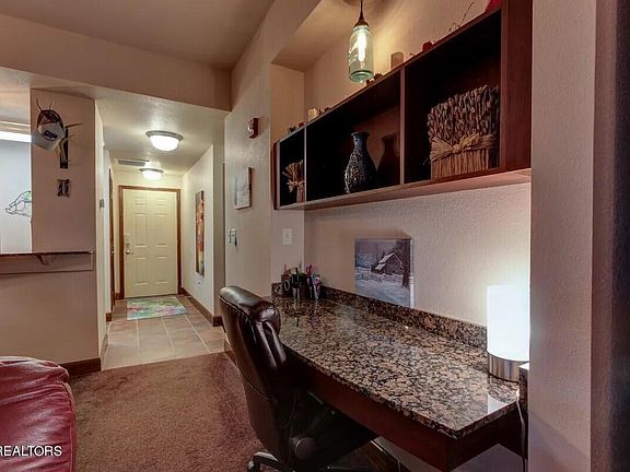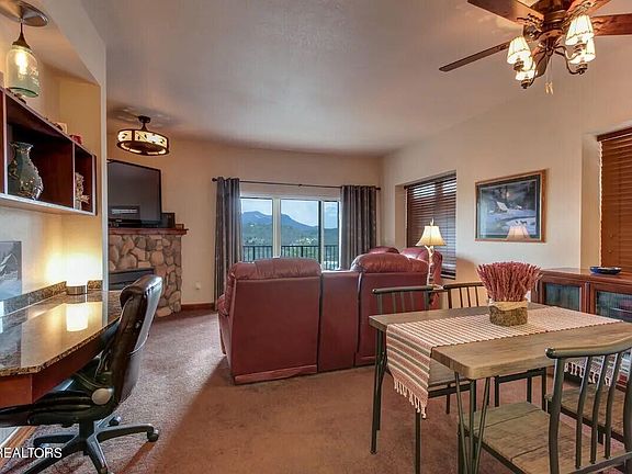 Nestled in the heart of Big Bear Lodge & Resort, this FULLY TURN-KEY exquisitely furnished ground floor end unit offers breathtaking mountain and valley views by day, transitioning into a twinkling spectacle of city lights at night! The spacious great room boasts an electric fireplace and opens to a wrap-around covered balcony, providing ample space for enjoying the panoramic vista. The modern kitchen features granite countertops, stainless steel appliances, and a breakfast bar for casual dining. The luxurious master suite offers private balcony access and a stylish ensuite bathroom with dual sinks, whirlpool tub, and custom tile shower. Additional features include a second bedroom, shared full bath, and utility/laundry closet with included washer and dryer. Take the elevator down to enjoy resort amenities such as indoor and outdoor pools, whirlpool spas, fitness room, and recreation/game room. Conveniently located minutes from the Parkway in Pigeon Forge, this unit presents an ideal opportunity for a low-maintenance primary or vacation home with strong rental potential. Other units in the building regularly gross over $45,000 annually in rental income. Schedule a showing today to explore the possibilities!