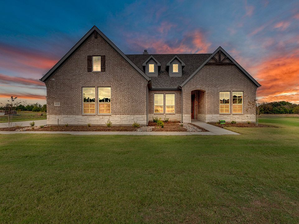 Upon entering the home off the front porch, you’re welcomed by an inviting foyer. Immediately to the left is a hallway with a bedroom, walk-in closet and full bathroom, as well as a linen closet. Past the foyer is the family entry, with storage space and mud bench, which leads to the laundry room and two or three car attached garage. Through the entrance, the home opens up to a large family room with a stately fireplace. Adjacent to the family room is a gourmet kitchen, equipped with a walk-in pantry, ample counter space and an oversized island. Finishing off this open-concept living area is a dining space which overlooks the covered back patio. A hall leads to two bedrooms with walk-in closets, another linen closet and a shared full bathroom. The back corner of the home offers privacy for the owner’s suite, featuring a massive walk-in closet and bathroom with a dual-sink vanity, standalone soaking tub and glass-enclosed shower.
