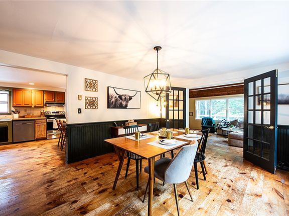 Welcome to your dream home in the woods! Nestled among 15+ acres of lush evergreens, this 4 bedroom, 2 bathroom ranch offers you a serene and spacious retreat. Whether you are looking for a cozy family home or a vacation getaway, this property has it all. You will love the open and airy living room with vaulted ceilings, a wood stove, and picture windows that bring the outdoors in. The dining room features French doors that lead to the wrap-around deck, where you can enjoy the views and the fresh mountain air. The kitchen is equipped with newer stainless-steel appliances and a large pantry. The mudroom off the kitchen provides extra storage and convenience. The master bedroom is a relaxing oasis with a walk-in closet and a full bathroom. The other three bedrooms are also generous in size and share another full bathroom. Outside, you will find a one-car garage with an attached storage area, a 12x24 barn, two storage sheds, and an 800 sq. ft. heated workshop, a newly fenced meadow, and a rustic camp site in the woods. Located minutes from the charming Village of Cooperstown and Cooperstown Schools. PLUS, the 2.65% fixed rate VA loan is ASSUMABLE for eligible borrowers!