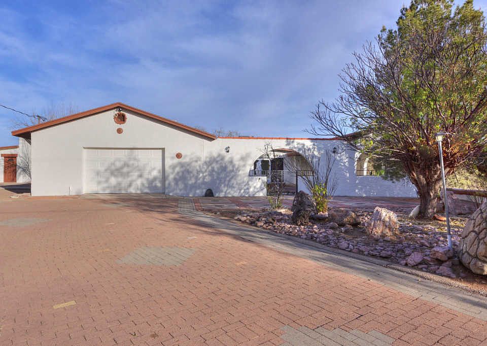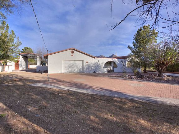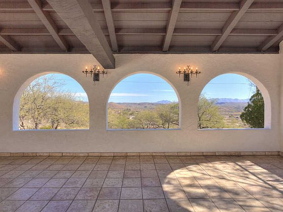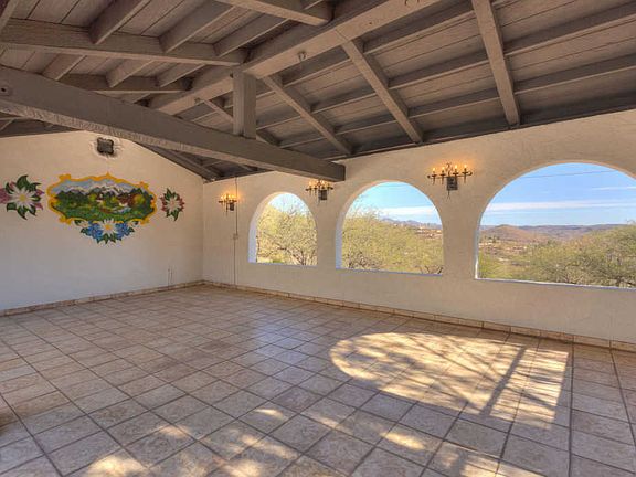Exceptional custom built home located on premier lot in coveted Rio Rico Estates! The property boasts an enclosed front court yard complete with brick pavers, fountain, covered patio with exposed wood beams, and remarkable views of the surrounding Santa Cruz County Valley! Interior includes Arizona room with stained concrete flooring, wood floors, custom built wood bar, great room with stone fireplace, living room with fireplace, bay windows, laundry room, desirable split bedroom floor plan, and spacious garage. Exterior features covered RV parking, two separate 'workshop' areas, tile work, greenhouse, storage areas, and covered patio! Recently renovated - features new roof, new interior paint, new air conditioning/heat pump unit, new appliances and new wood floors!