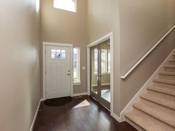 Space coupled w/ function & style! Large den on main, open kitchen with ample counter space, storage & breakfast bar. The dining room & expansive living room are made even more dramatic by the high, open ceilings. Spacious & private master suite on main features an impressive dual vanity bathroom w/ shower, soaking tub, & large closet. Three beds w/ large closets upstairs & shared bathroom. Only a few blocks to community park and trail!