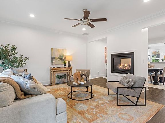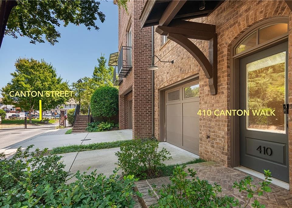 Walkable lifestyle in the heart of downtown Historic Roswell! Gorgeous brownstone just steps off Canton Street in gated Providence. Move-in ready with fresh paint, durable flooring and an easy-living layout. Main level features an open floor plan that allows light fill the entire space. Family room is divided from the dining space by a two-sided fireplace. Kitchen features a center island, gas range, new backsplash, granite counters, a pantry, and plenty of cabinet storage. Kitchen is open to the dining space and to the rear open-air deck, an ideal outdoor sitting space or a place for an herb garden. Upstairs you'll find a spacious primary suite with large, bright windows, a huge walk-in closet, an additional walk-in closet and a large bath with double vanity, soaking tub and walk-in shower. The second bedroom is also suite style with a walk-in closet, and bathroom with a tub, shower and a vanity with plenty of storage space. Laundry room and linen closet is nicely situated between the bedrooms for convenience. The lowest level features an oversized space with a built-in ventless fireplace that could be used as a bedroom, a theater room or a home gym. Large door and windows give a view to the private courtyard space that provides both covered space for sitting and sunny space for a garden. Full bath and space for a walk-up bar complete the lower level. One-car garage provides secure parking with additional parking available in the driveway and designated parking spaces within the gated complex. The community provides you an outdoor pavilion with a stone fireplace, a dog park, and the feeling of being tucked away in a secret corner. While you will love this home, you will truly love the walkable access and lifestyle you'll gain living here. Literal steps from Canton Street means you can join the party when you want, and walk home to peace in minutes. You will love exploring the restaurants and shops. You will love the walkable lifestyle, only a short ways to the River and Riverwalk or to the Roswell Area Park. You will love your neighbors who are friendly, welcoming and who appreciate how lucky they are to live this life. You will truly love living here. These homes are rarely on the market - don't miss your chance, book your showing today.