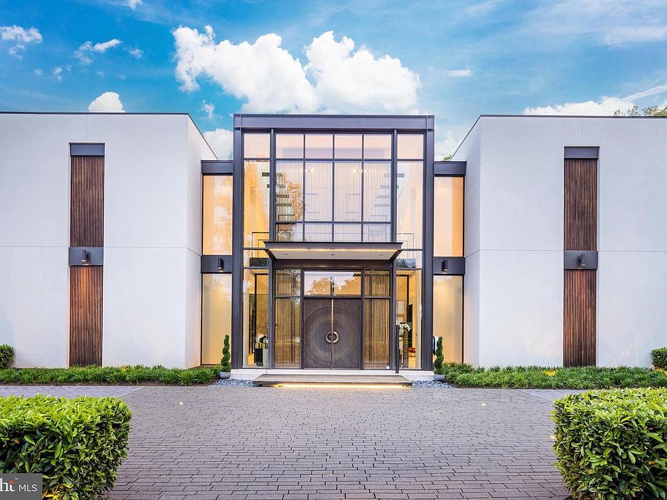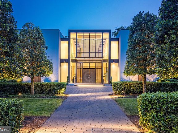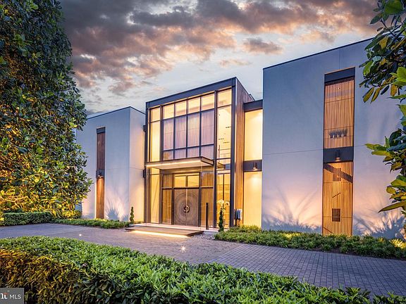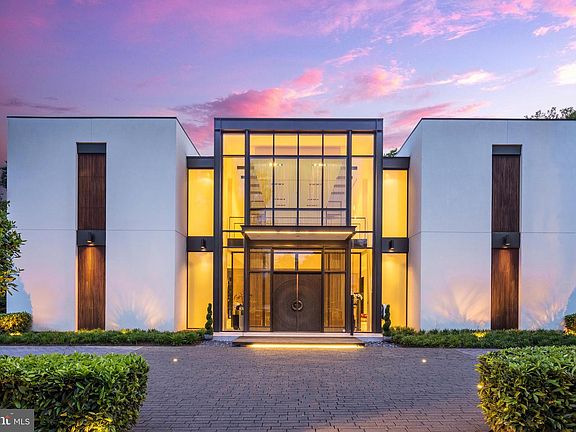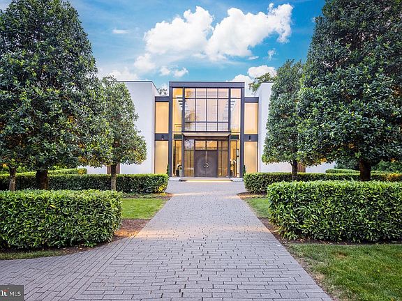 Introducing a contemporary masterpiece of luxury: neighbor to billionaires, dignitaries, C Level Suite executives, and high-ranking officials, the property is located in the D.C. Metro-Area's most exclusive and secure neighborhood. Meticulously designed by architect Mark McInturff and built by Added Dimensions Constructions, this extraordinary home exudes European elegance, boasting 8,367 square feet of beautifully curated, conditioned interior space. The home offers convenient accessibility with an elevator. A reception hall enhanced by sliding bronze mesh screens offers elegance and privacy. With soaring 25-foot ceilings, the Great Room sets a grand and sophisticated ambiance. A bespoke chandelier by Manooi, adorned with Swarovski Crystals, adds a captivating touch. Skylights and floor-to-ceiling windows create a sunlit atmosphere. The gourmet kitchen features top-of-the-line Gaggeneau appliances, custom Boffi Italian cabinetry, and a European maritime-themed center island by Alno. The flooring combines high quality white oak, white limestone, and beautiful polished concrete. Technological innovation integrates seamlessly with automated lighting, audio, and video systems. Automatic shades and roller screens provide comfort throughout the home. Sustainability meets efficiency with hydronic radiant heating and a geothermal system. The spacious primary suite offers a sitting area, walk-in closets, and two luxurious baths with a soaking tub, fog-free mirror, and steam shower. The meticulously designed hardscape includes a travertine lounge patio with a gas fire pit and BBQ station, overlooking lush parklike gardens and a picturesque creek. A saltwater waterfall infinity-edge, heated swimming pool adds to the private oasis. Prepare to be captivated by a truly exceptional home that redefines contemporary luxury and the highest quality at its finest.
