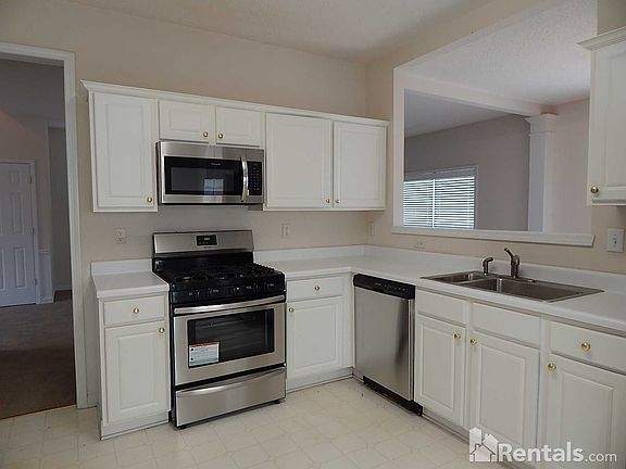 Great space in this 3 bedroom 2.5 bath home. Large, open, bright living room features gas log fireplace. White kitchen with refrigerator, gas range, dishwasher, built-in microwave, garbage disposal, pantry and breakfast area. Large master suite with vaulted ceiling, master bath which features a garden tub, separate shower, double vanity and walk-in closet. Two secondary bedrooms and hall bath upstairs are also located on second floor. The laundry room is just off the kitchen area includes washer and dryer. Two car garage with auto door openers. Back patio and partially fenced-in back yard for entertaining.