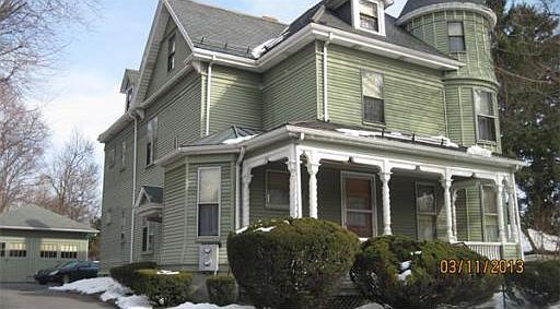 This grand home was built in 1890, offers over 3300 SF of living area and is sited on a 11,000 SF lot in Cushing Square. Zoned as a 2 family, this home could be returned to a majestic single family Victorian, or converted to 2 condos. Walk up to open space attic w extraordinary potential for development. True to Victorian form, this home boasts 10 ft ceilings, pocket doors, elegant staircases, incredible stain glass windows. Large level lot, 2 kitty corner f/p. 2 car detached garage.