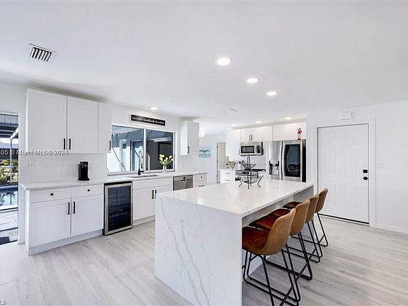 This STUNNING 4 bedroom 3 full bath home has been totally remodeled and is offered TURNKEY. Income producing property as an active Air-BNB. Booked future income can be yours. Surrounded by Multi-million dollar homes in this very popular area of Cape Coral, this home makes a perfect Air-B&B. Inside you'll find LUXURY VINYL TILE throughout the lovely home. Enjoy the feel of openness from the moment you walk inside with close to 1800 sq ft of living area this home features a newly remodeled kitchen with a large island breakfast bar. This home not only has beautiful finishes, it has a NEW ROOF, NEWER WINDOWS, NEW POOL HEATER PUMP AND APPLIANCES. The oversized pantry has lots of storage along with an indoor laundry room.