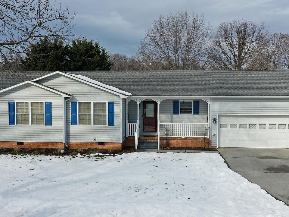 ALL ON ONE LEVEL AND PRICED TO SELL! GREAT IN-TOWN CONVENIENCE. Well-maintained 3-bedroom, 2-bath rancher with a 2-car garage and screened porch. On a cul-de-sac but close to stores, restaurants and services. Open floor plan. Beautiful hardwood and tile floors. Cozy gas log fireplace for winter warmth and ambiance. Dining area off the living room and a well-appointed kitchen with a gas oven/range. Owner's bedroom suite with 11x6 walk-in closet, 9x5 alcove with sink, and bath with separate tub, shower and water closet. Screened back porch with ceiling fan for summer days, 10x15 with low maintenance composite decking and vinyl railings. Covered front porch 17x4. Storage building 10x8. New HVAC. Roof with architectural shingles in 2015. Hot water heater 2019. Shelves and cabinets in the garage plus extra insulation in walls and ceiling. Glow Fiber internet and TV. Home conveys with kitchen appliances, washer and dryer, shades/blinds and window treatments, 4 ceiling fans. Also conveys with a Troy Built riding lawn mower with 42-inch cut and a bagging system, new blades. City trash service.