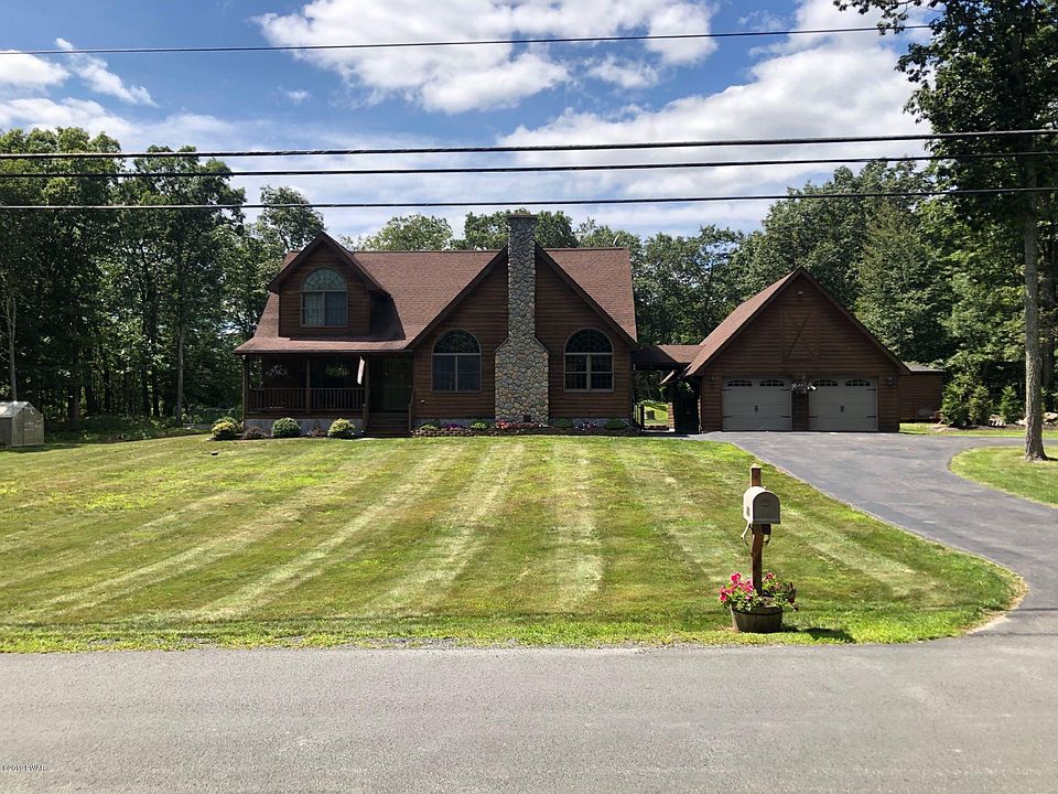 Beautiful custom-built lodge in Milford, PA on 1 fully landscaped, park-like acre backed up to thousands of acres of state land! This 2,705 sq ft home features cedar siding, 4 bedrooms, 2 full baths, a full basement, and an over-sized 2 car garage with space above. The french doors overlook a 2-tier composite deck surrounding a 26' round pool. Additionally, the backyard is complete with a shed, greenhouse, garden, large jungle gym, koi pond and a 10x17' predator-proof chicken coop and pen. This home is oil heated, has central a.c., and includes an outdoor wood boiler that will heat the entire house, garage and pool! NO community (which also means no HOA) and a great commuting location being 5 miles to I-84 and 3 miles from nationally recognized Delaware Valley Schools.