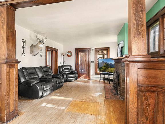 One of a kind opportunity to own a piece of Swanville history. This cute bungalow is nestled on a double lot, with a decent sized garage and house that are waiting for your ideas and handiwork. Built in 1891, 2 years before the Village of Swanville was incorporated, this home has been apart of a lot of history. The original millwork and flooring are still intact, waiting for someone to breathe new life into them. This could be the perfect house to live in and work on while you fix it up. The floor plan is ultra functional and has sizable live spaces as well as main floor laundry. Three bedrooms and a bathroom can be found upstairs. This charming home has good bones and a prime location, (Midsummer Carnival in your front yard!!) it is looking for new owners to put some TLC into it and make it shine like new again!
