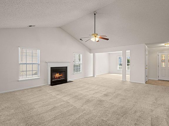 This charming ranch home is nestled in the sought after neighborhood of Weatherstone. The front porch welcomes you to sit and enjoy an early morning cup of coffee. As you walk in, you are captivated by the new carpeting and freshly painted interior, making the home feel like new. The open floor plan allows for natural light to brighten up the home. The spacious living room is adorned with a wood burning fireplace, perfect for creating a warm and cozy atmosphere for entertaining family and friends. The beautiful eat-in kitchen features recessed lighting, ample cabinet space, a lovely tile backsplash and sleek stainless steel appliances. The master bedroom is complete with a large walk-in closet and en-suite bathroom with a garden tub/shower combo.Step outside and enjoy the outdoors from the privacy of the fully fenced in backyard. The covered patio is great for grilling out with friends while the kids run around the yard with the family pet. The attached 2 car garage provides the opportunity for extra parking, as well as extra storage space. Enjoy all the amenities that Weatherstone has to offer, including a community pool, playground and community pond, all of which are fun for those who enjoy spending time outside. This home is conveniently located a short 7 minute drive from the up and coming Nexton Square, as well as the charming downtown Summerville area, both of which you will find an abundance of local shopping, dining and entertainment options. Don't wait! Come see this home today!