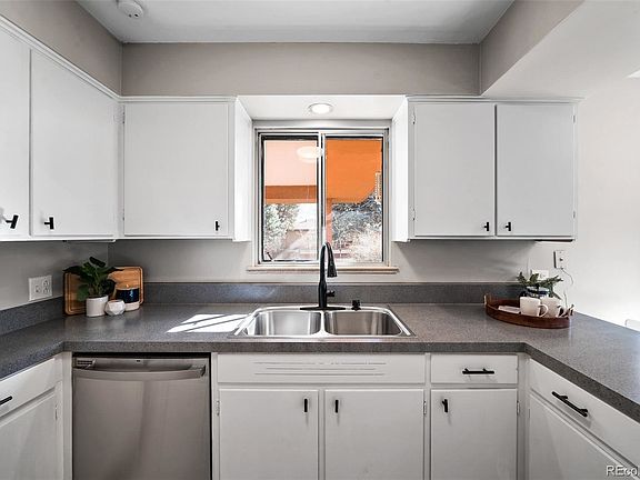 Excellent brick ranch in Lakewood's Meadowlark Hills neighborhood on a large private 10,100+ square foot lot. Great functional layout with 3 bedrooms plus an office on the main floor. Additional 4th non-conforming bedroom in basement. Spacious living room with corner windows to bring in natural light. Updates include newly refinished oak hardwood floors, new interior paint, new interior carpet in basement, new lighting/fixtures, new door hardware, new stainless steel kitchen appliances & more. Bathrooms updated with new vanities, toilets, fixtures & flooring. New water heater just installed. New furnace installed October 2018 & new central A/C installed 2019. Black Nest wifi thermostat. Basement with recreation room, spacious laundry room with ample cabinet storage, and multiple storage rooms. The exterior features a large private fenced back yard with covered patio, an extra wide car port, sprinkler system, & storage shed. Excellent location in the neighborhood less than a block and a half from Meadowlark Park (with a playground, swings, stream/gulch, and popular sledding hill). Great location with easy access to 6th Ave & the mountains to the west, while also being less than 10 minutes from downtown Denver to the east. Close to the shops & restaurants of Belmar, and much more. Schedule your showing today! Buyer to verify finished square footage.