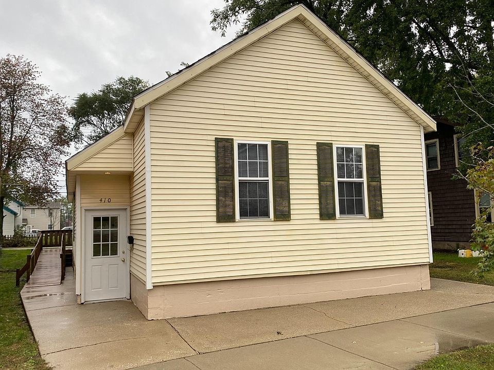 Elston Grove Historic District ranch charmer in the heart of Michigan City. 9' High ceilings. Enclosed front porch leads to living room and kitchen plus 3 bedrooms, two of which are very large. Hardwood flooring. Ramp and deck to back door. Good sized yard, alley access, so there is opportunity to add off street parking. Durable low maintenance vinyl siding and nice concrete apron. Newer A/C unit. Basement unfinished mainly for mechanicals and some storage, plus has crawl space. Has been investment property and could be again. Most recently the home rented for $1,300/month. Property is sold AS-IS. Buyer to verify SF. Michigan City downtown and lakeshore has some of the best redevelopment energy in Northwest Indiana. Make this your home or invest here. Set your appointment for a viewing today! Also listed as package deal with MLS # 540185.