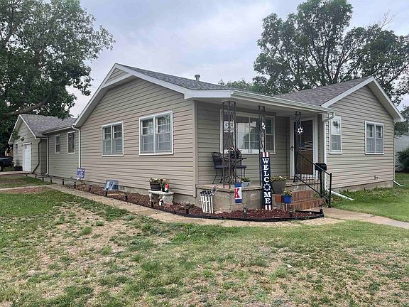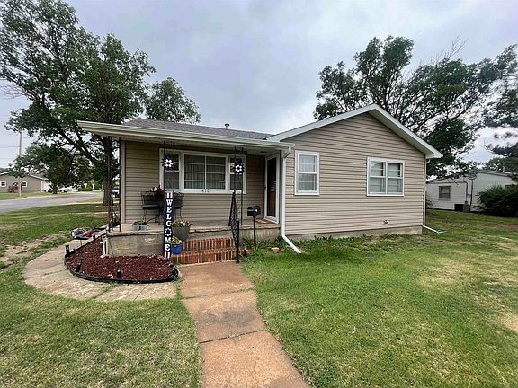 This charming home sits on a large corner lot with beautiful mature trees with an oversized detached garage. Once you enter the house you are greeted with original hardwood floors, ample amount of natural light, a large family room for everyone to enjoy. 3 bedrooms with a non-conforming bedroom in the basement and a bonus room currently being used as a weight room. Recent updates include new siding, roof, fence, HVAC system, light fixtures and paint throughout. If you are looking for small town living call Sharrah with Platinum Group for your showing today!! 785-639-3631 Under contract. Bring back up offers..