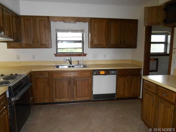 Nice home one block from school, has nice kitchen cabinets & dining area w/patio door going to back fenced yard. Home has 3 bedrooms & 2 baths, good sized living room, a utility room, one car garage w/work room on back also has a large covered front porch